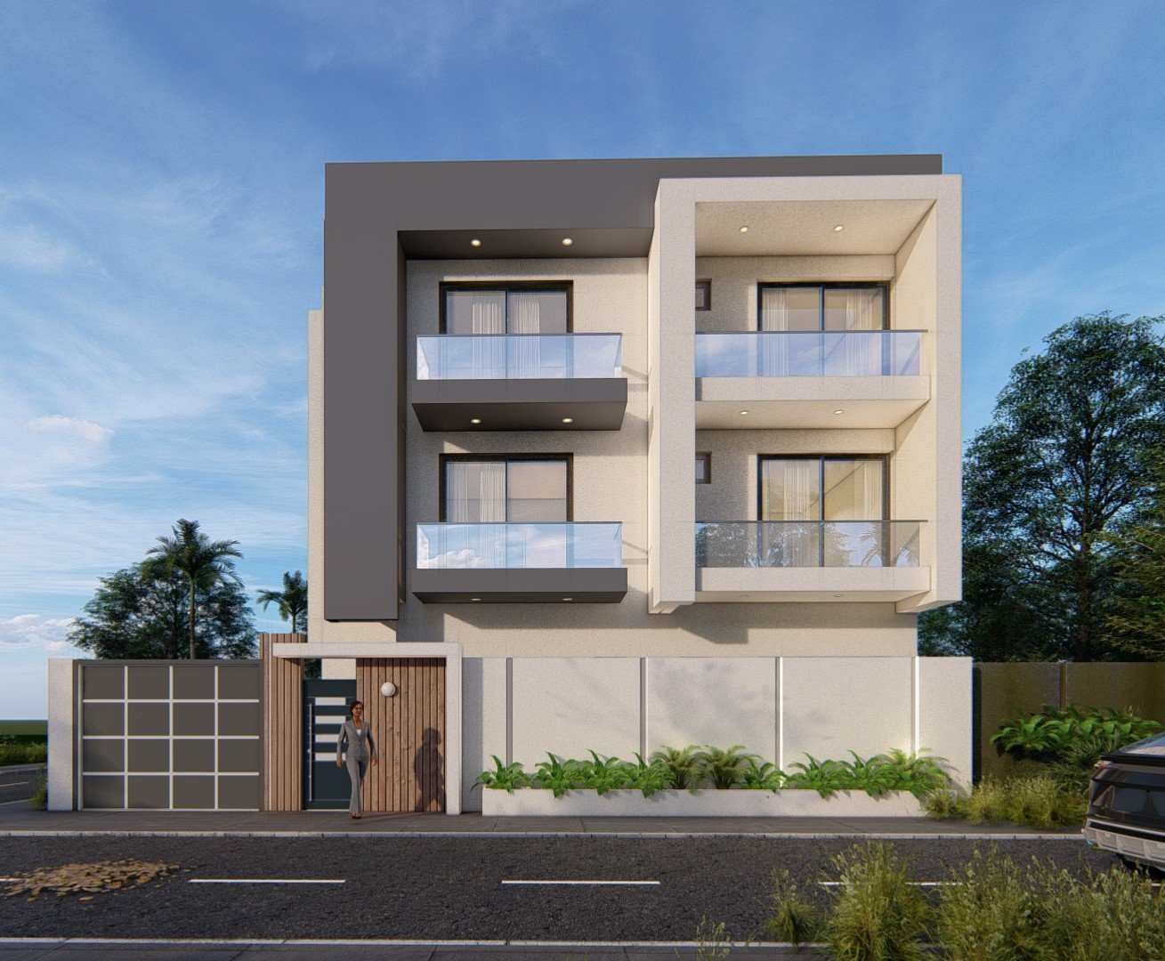 Immeuble résidentiel contemporain – Projet Mme Thioune Ce projet d’immeuble résidentiel se compose d’un duplex de cinq chambres avec salon et cuisine, complété par deux appartements au dernier niveau. Son architecture moderne, fondée sur des volumes imbriqués, offre une façade à la fois structurée et élégante. L’alternance des matériaux, les larges ouvertures et les balcons […]