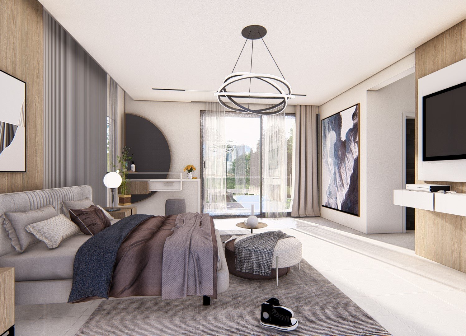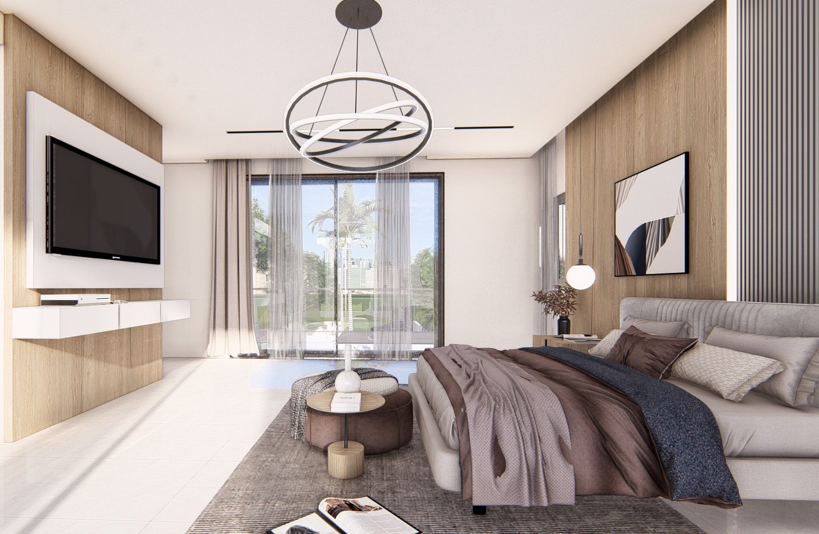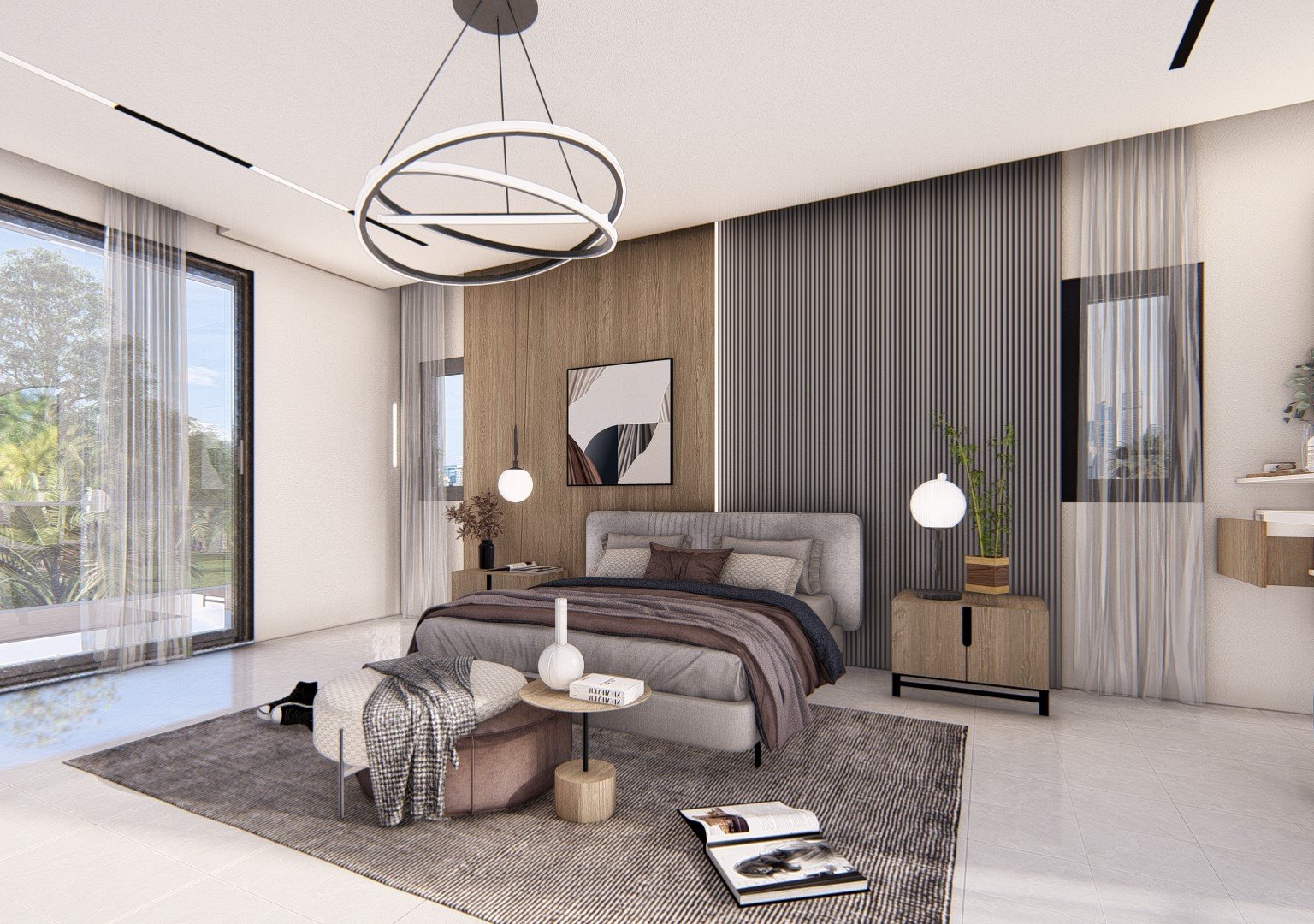 Les larges ouvertures prolongent la chambre vers